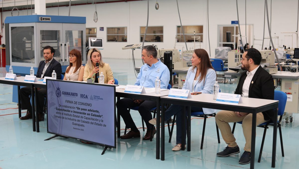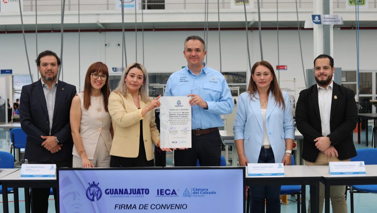 León, Guanajuato, 22 de septiembre de 2025. Con el objetivo de fortalecer la formación técnica y dar respuesta a las necesidades actuales de la industria del calzado, el Instituto Estatal de Capacitación (IECA) y la Cámara de la Industria del Calzado del Estado de Guanajuato (CICEG) firmaron un convenio de colaboración que permitirá aprovechar al máximo los recursos de ambas instituciones para beneficio de las y los afiliados de este importante sector productivo.
